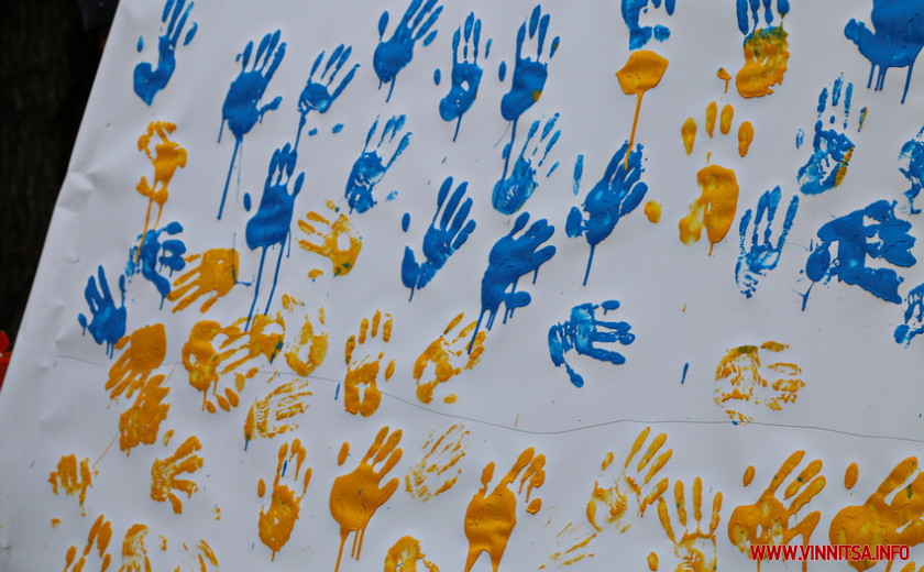 В нас є підготовлене біле полотно, довжиною 11 метрів, яке ми повинні заповнити відбитками долонь, використовуючи два кольори: синій і жовтий», – каже Дмитро Мира, голова Вінницької молодіжної ради.
