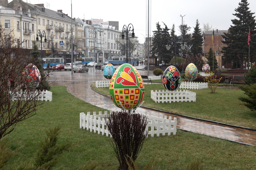 У Вінниці традиційно розмістили велетенські писанки. А також створили нову писанку-оберіг, в центрі якої зображений тризуб – Герб України в оточенні символів оберегів: квітки-сонця, квітки-надії, квітки-родючості.