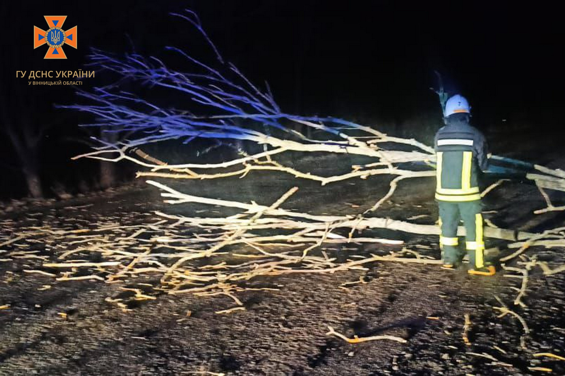 «Внаслідок сильного пориву вітру, бійці ДСНС розкряжували та прибрали повалені дерева з проїжджих частин доріг, що перешкоджали руху автотранспорту у м. Вінниці, в Вінницькому та Хмільницькому районах області», - зазначено в інформації рятувальників.