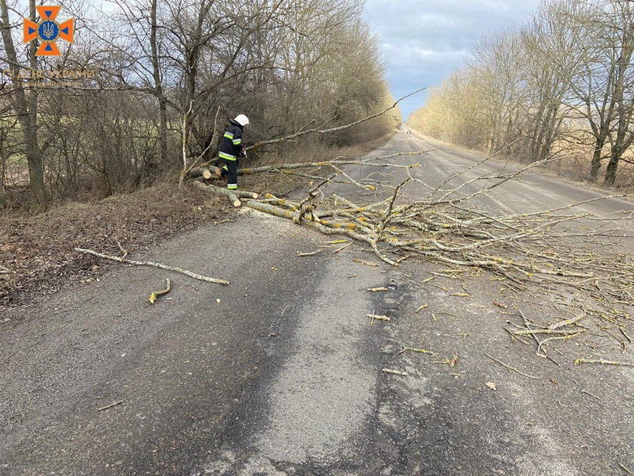 18 лютого об 11:31 до Служби порятунку «101» надійшло повідомлення про те, що на автодорозі за межами с. Літинські Хутори впало дерево та частково перекрило рух автотранспорту.