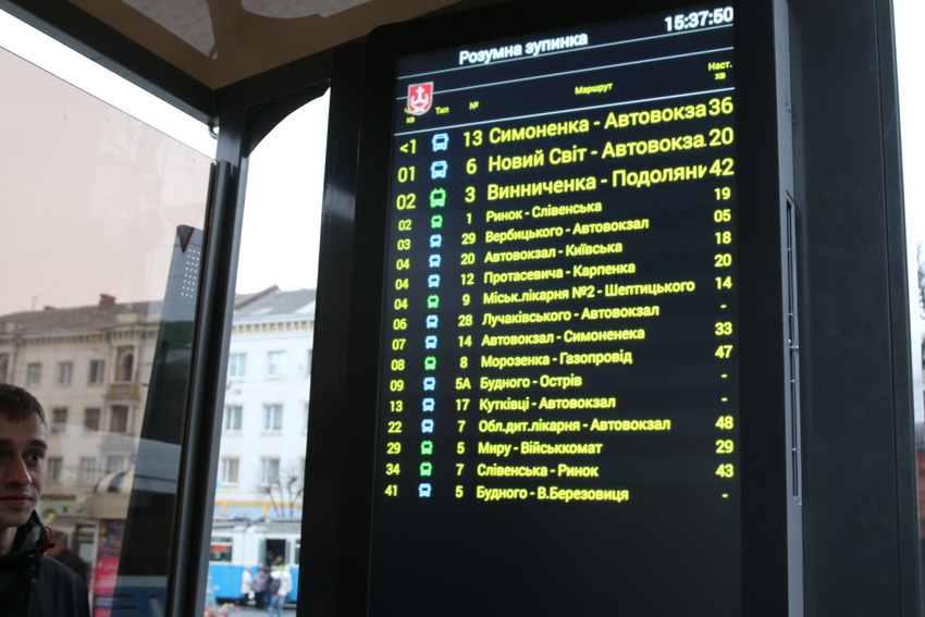 На табло буде висвітлюватись інформація про прибуття всіх видів громадського транспорту в режимі реального часу - трамваїв, тролейбусів, автобусів і маршрутних таксі.