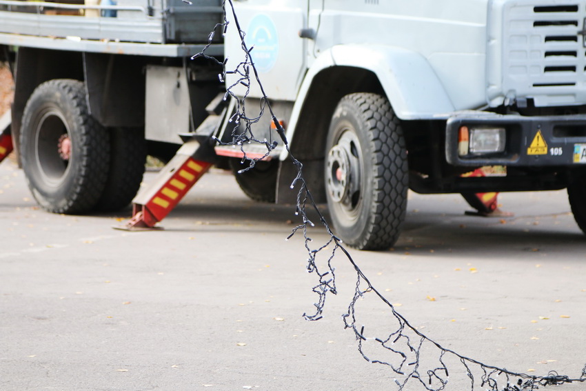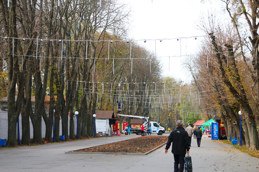 Гірлянди, які мерехтітимуть вогнями, розміщують на алеї зі сторони вулиці Хлібної, бурульки – зі сторони вулиці Грушевського.