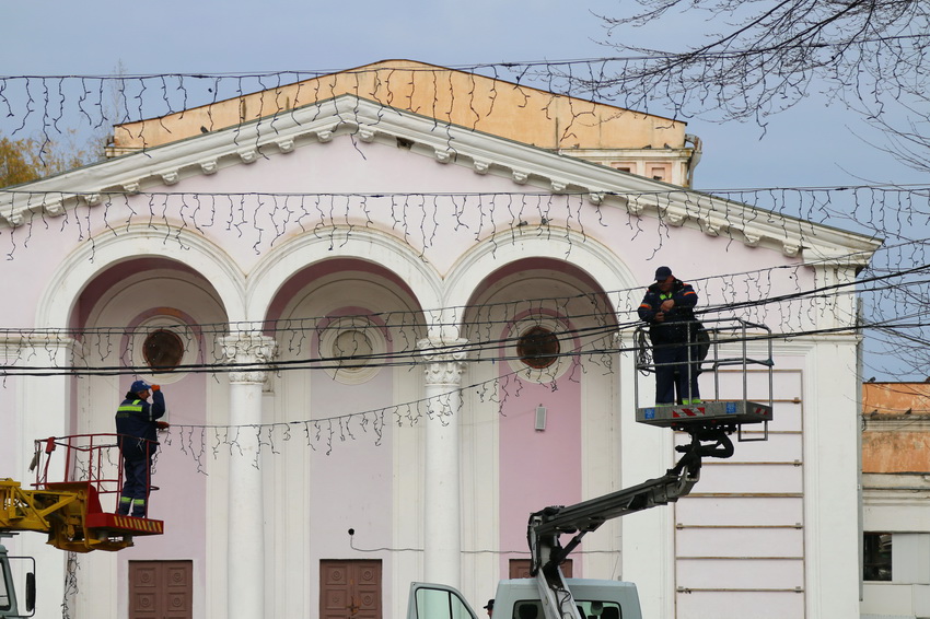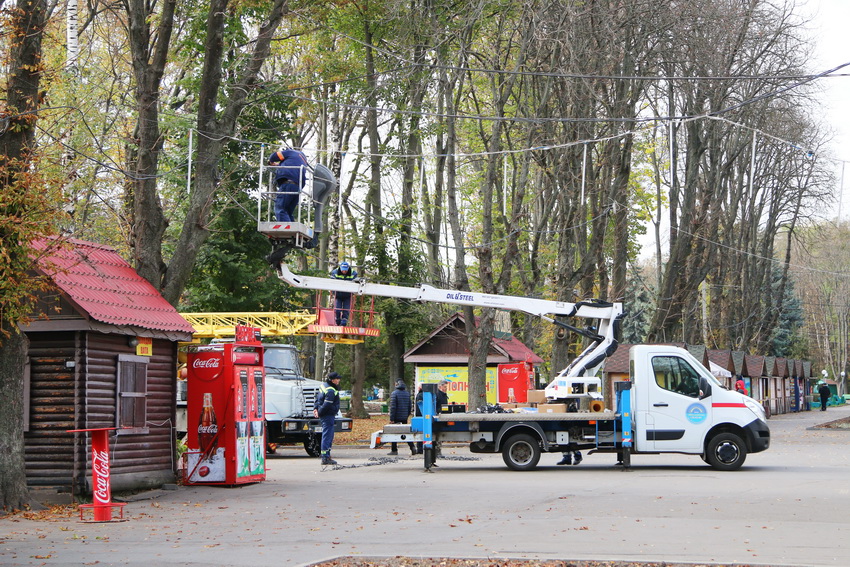 31 жовтня Центральний парк у Вінниці почали готувати до новорічних святкувань. Працівники підприємства «Міськсвітло» кріплять ілюмінації.