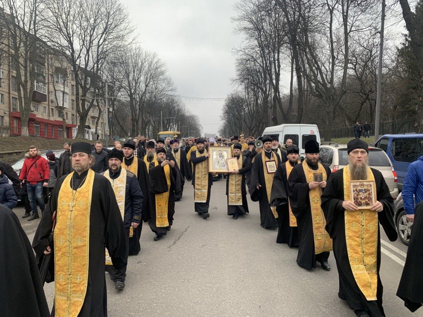 8 березня кілька тисяч віруючих Української православної церкви Московського патріархату пройшли хресною ходою центром міста, а потім зібралися під стінами Спасо-Преображенського собору, аби помолитися проти епідемій, хвороб та за «повернення святині» до УПЦ МП.