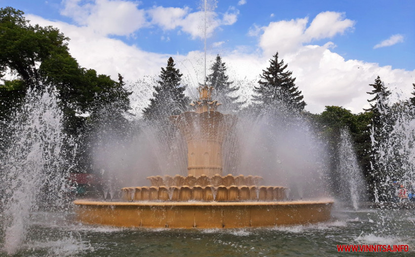 Найстаріший фонтан міста, що в Центральному парку, також працює. В обідню пору дня біля водограю зібралося чимало вінничан.