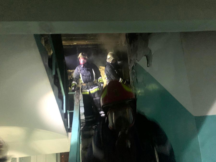 Прибувши до місця події рятувальники з’ясували, що вогнем охоплено кладову між четвертим і п’ятим поверхом на площі 4 кв.м.