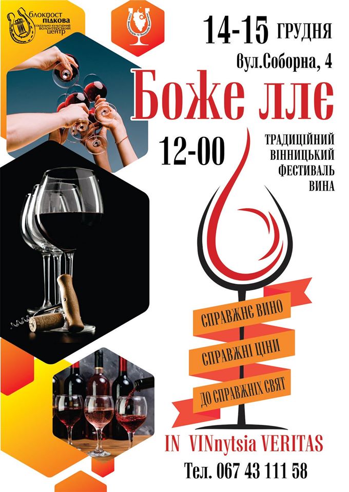 З 14 по 15 грудня у Вінниці вдруге відбудеться фестиваль вина «Боже ллє». На захід зберуться винороби зі всієї України, які представлятимуть свої напої.