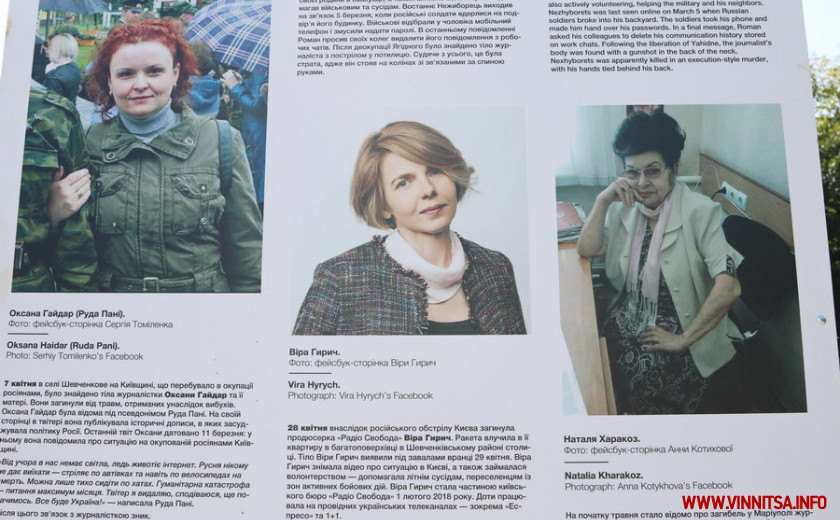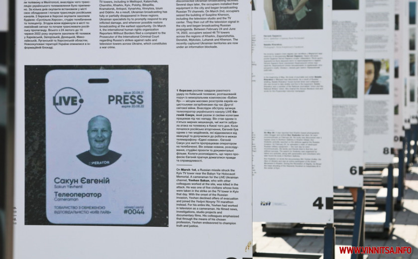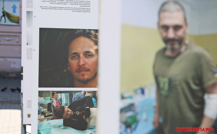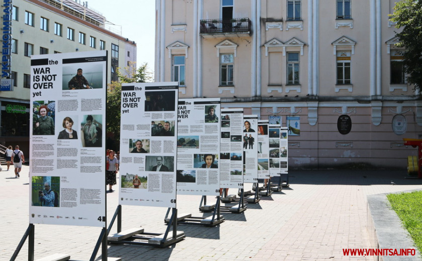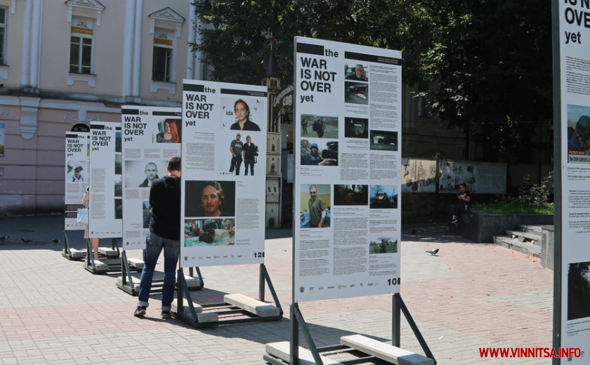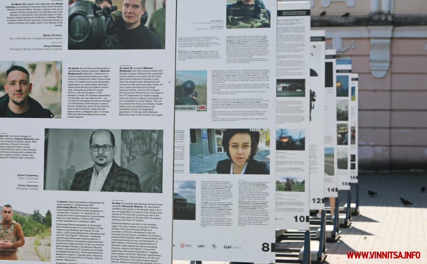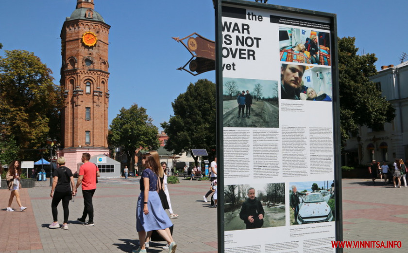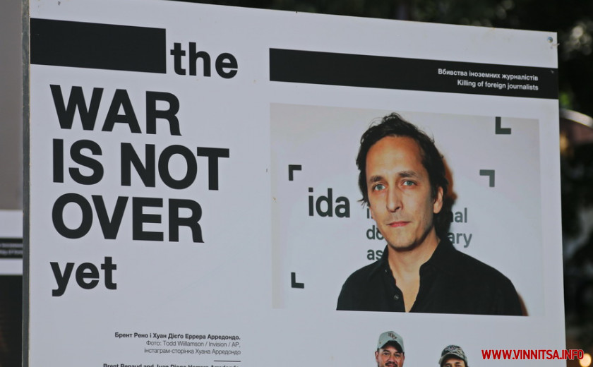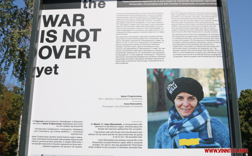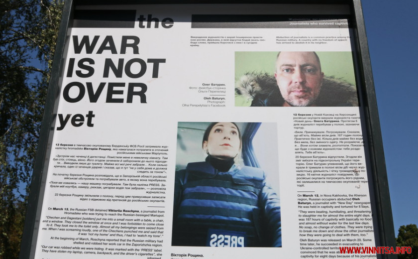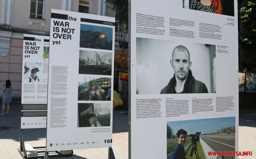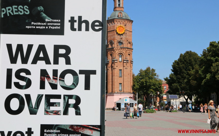 У Вінниці, на Європейській площі, відкрили виставку «The War Is Not Over Yet». Вона про журналістів, які загинули, були поранені, опинились під обстрілами чи зазнали переслідувань з початку повномасштабної війни росії проти України.