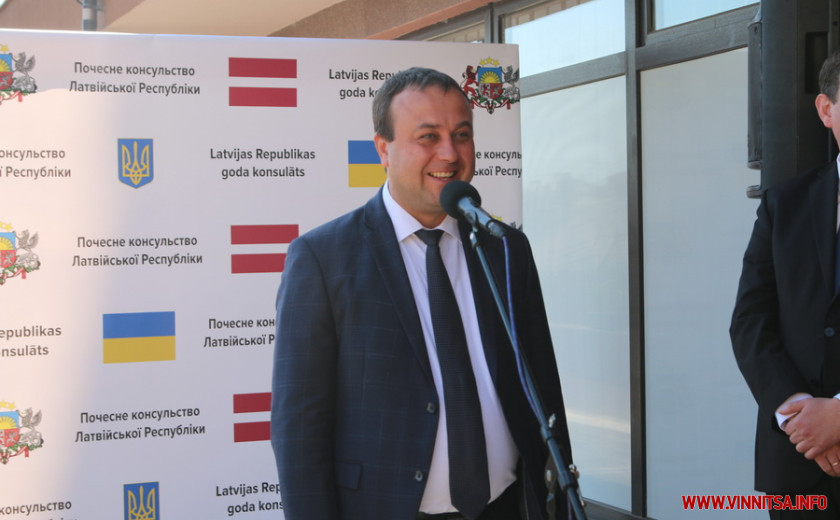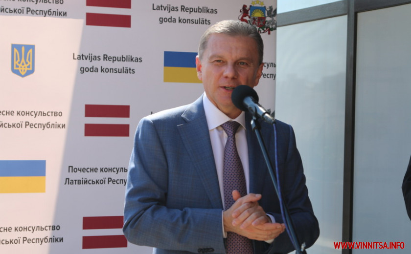 На відкритті посол Латвії в України Юріс Пойканс представив та привітав почесного консула Ігоря Скоромного, який працюватиме у Вінниці.