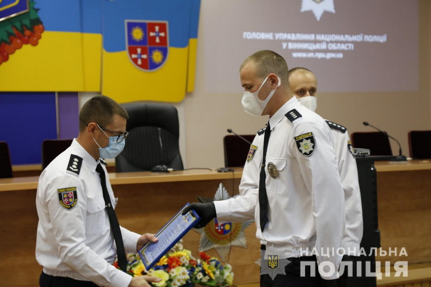 За вагомий внесок у зміцнення законності та правопорядку начальник Головного управління ДСНС у Вінницькій області Руслан Шевчук від Вінницького обласного осередку Всеукраїнської асоціації ветеранів війни та служби цивільного захисту вручив трьом поліцейським медалі «За службу Україні» та «За плідну співпрацю».
