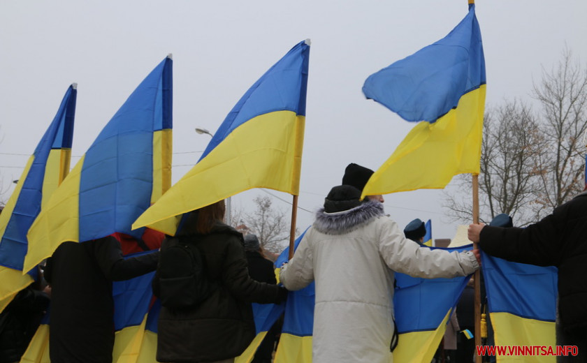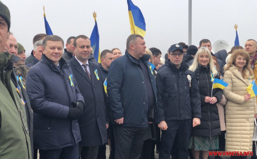 У Вінниці 16 лютого вперше відзначили День єднання. Представники влади, студенти, посадовці, військові, правоохоронці, голови громад Вінниччини та пересічні вінничани на Замковій горі взяли участь в урочистому піднятті Державного прапора України. Разом співали Гімн і молитву за мир в Україні. Кожен присутній - з прапором України і синьо-жовтою стрічкою.