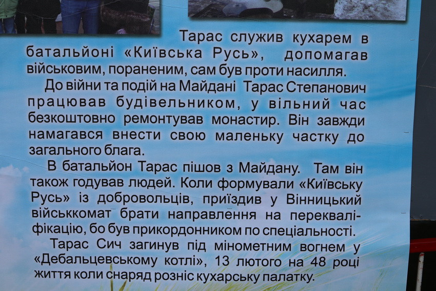 29 червня розпочався п’ятий фестиваль польової кухні, присвячений пам’яті вінничанина Тараса Сича, який служив кухарем у батальйоні «Київська Русь», а 13 лютого 2015 року загинув під мінометним вогнем у «Дебальцевському котлі».