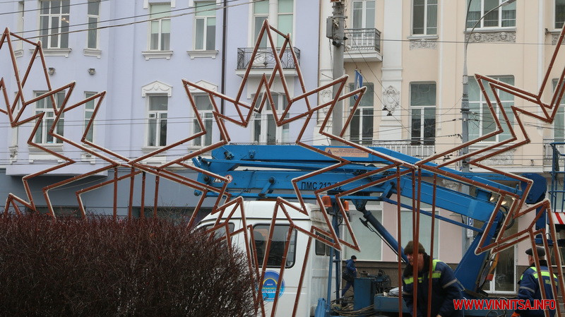 15 грудня у Вінниці в центральній частині міста почали встановлювати новорічні світлові ілюмінації.