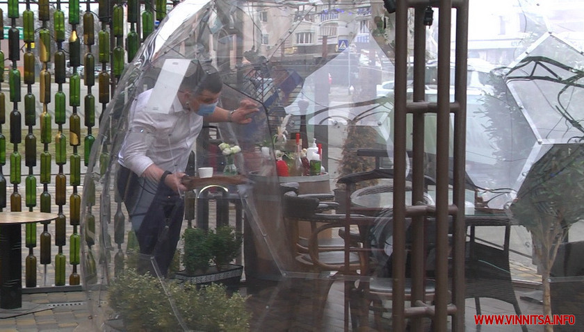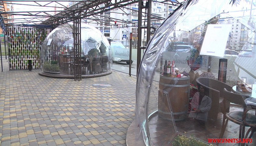 У Вінниці встановили дві перші «антиковідні» кулі. Прозорі сфери розмісили на літньому майданчику одного з ресторанів у мікрорайоні Поділля. Без ризику зараження COVID-19, тут можуть одночасно розміститися шестеро персон. І найголовніше, їх виготовляють вінницька фірма для зарубіжжя.