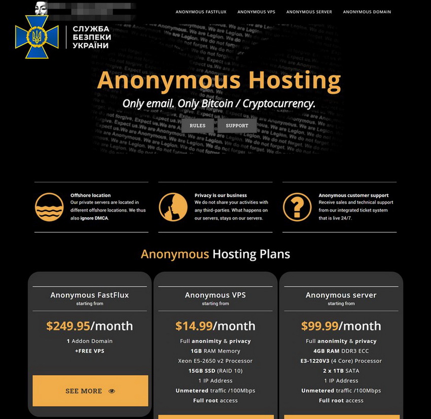 Служба безпеки України у Вінниці виявила та припинила діяльність хакерського угруповання, яке спеціалізується на наданні послуг «абузостійкого» хостингу. Серверне обладнання хостингу використовувалось учасниками угруповання та третіми особами для здійснення кібератак на органи влади та управління України, об’єкти критичної інфраструктури України, банківські установи держави та світу.