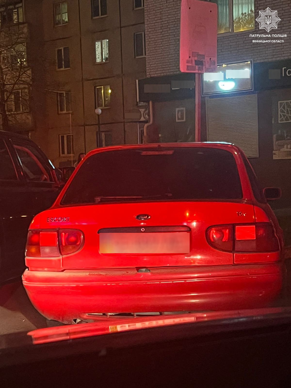 У Вінниці вчора ввечері на вулиці Зодчих за порушення ПДР поліцейські зупинили автомобіль Ford Escort. Під час спілкування у водія патрульні помітили ознаки наркосп'яніння.