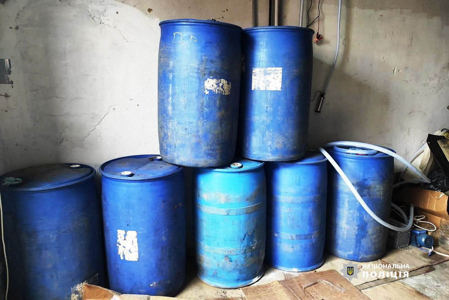 В ході проведення слідчих дій працівники поліції вилучили 2 600 літрів спирту невідомого походження, 1 800 літрів фальсифікованого алкоголю, ємності різних розмірів для його виготовлення, фасування, зберігання та перевезення, тетрапаки, мобільні телефони, банківські карти, автомобілі правопорушників.