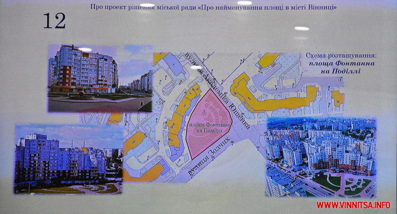 «У нас район вже практично сформований, є усі названі вулиці. Залишилась «сіра пляма» в центрі мікрорайону, біля вул. Зодчих, 16. Там розміщений працюючий у літній час фонтан, ну і площа перед ним. Кращої назви, аніж площа Фонтанна на Поділлі – як на мене, не було. Це не прив’язується до якихось особистостей, а навпаки, уособлює назву нашого мікрорайону Поділля», - розповів Вінниця.info депутат Вінницької міськради Андрій Очеретний, який став ініціатором найменування площі.