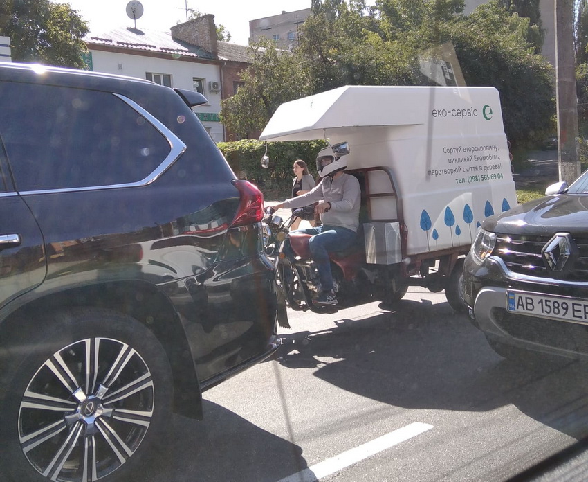 Від понеділка 14 вересня у Вінниці розпочинає роботу «Еко-сервіс». Мотоцикл з великим критим причепом збирає у мешканців міста та фірм вторинну сировину. Незвичний автотранспорт вже виїхав на вулиці міста.