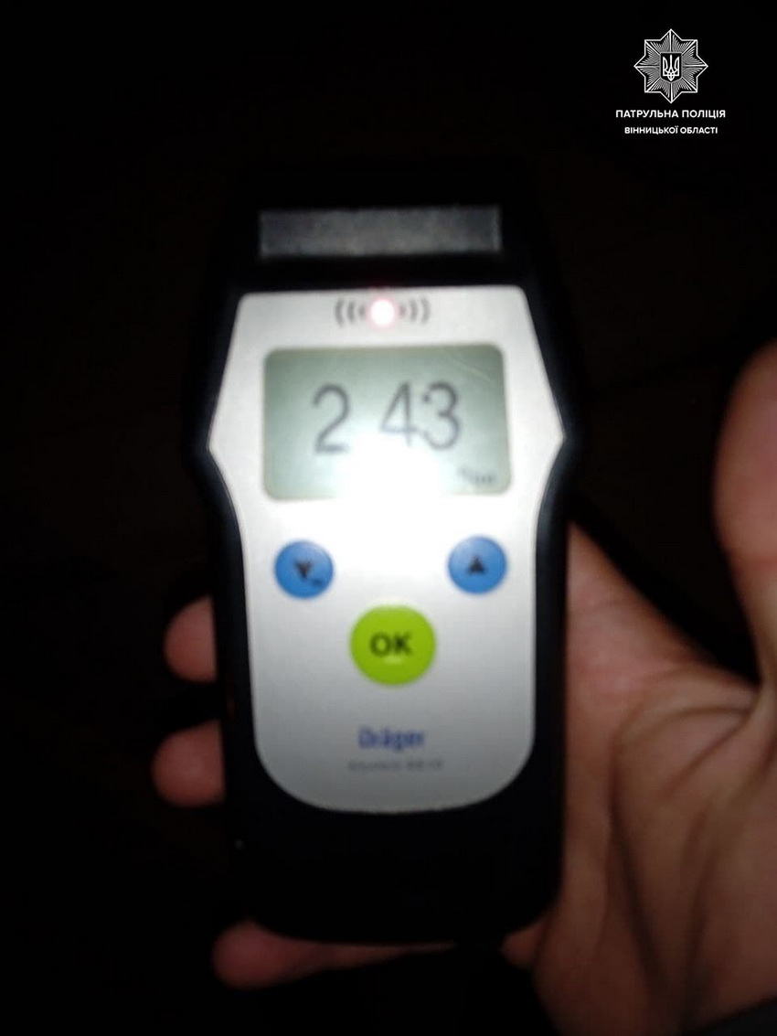 Ввечері 12 жовтня, по вулиці Чехова у Вінниці, патрульні перепинили водія мопеда Suzuki. Як з’ясувалося, окрім того, що той порушив правила дорожнього руху, ще й був добряче п’яний. Рівень алкоголю в його організмі перевищував допустиму норму у 12-ть разів. Та й взагалі 41-річний чоловік не мав прав водія.