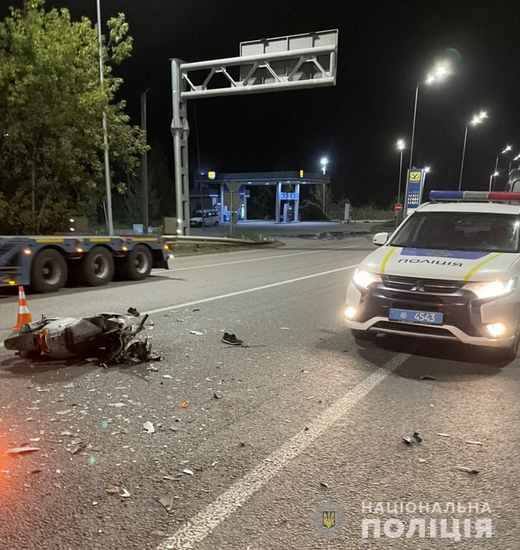 У результаті автопригоди водій двоколісного транспортного засобу від отриманих тілесних ушкоджень загинув. 58 – річний водій вантажівки освідуваний, він тверезий.