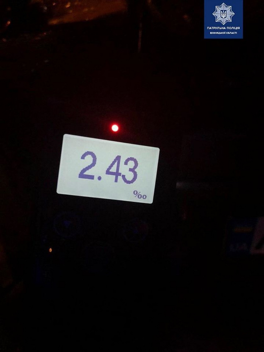 Інспектори зупинили автівку. Спілкуючись із водієм, виявили в нього ознаки алкогольного сп'яніння. Чоловік водійського посвідчення не мав, оскільки позбавлений права керування за водіння напідпитку. Порушник погодився пройти огляд на стан сп'яніння на місці зупинки. В організмі водія виявили 2,43 проміле алкоголю.