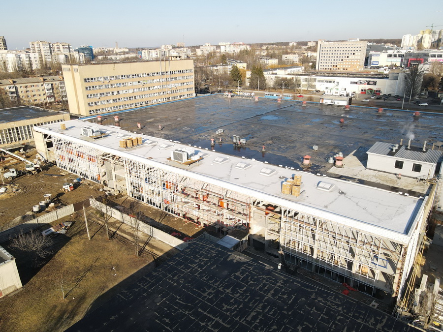 На об’єкті тривають фасадні роботи. Також продовжується влаштування інженерної інфраструктури: кабельної лінії, трансформаторної підстанції, системи вентиляції та кондиціонування. Внутрішній простір зонують міжкімнатними перегородками та встановлюють декоративну стіну, яка буде використовуватись як проєкційна поверхня та для створення експозицій.