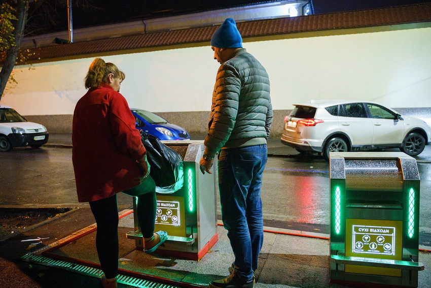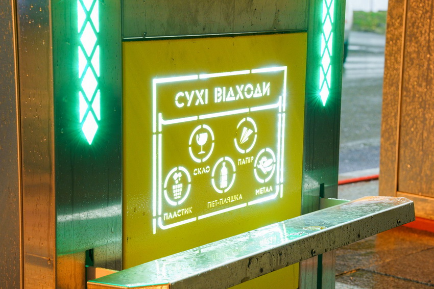 Біля сміттєвих баків також встановили світильники та камери відеоспостереження, які працюватимуть на сонячних батареях. Біля контейнерів розмістили спецільні інформаційні таблички, де роз’яснено, як правильно користуватися.