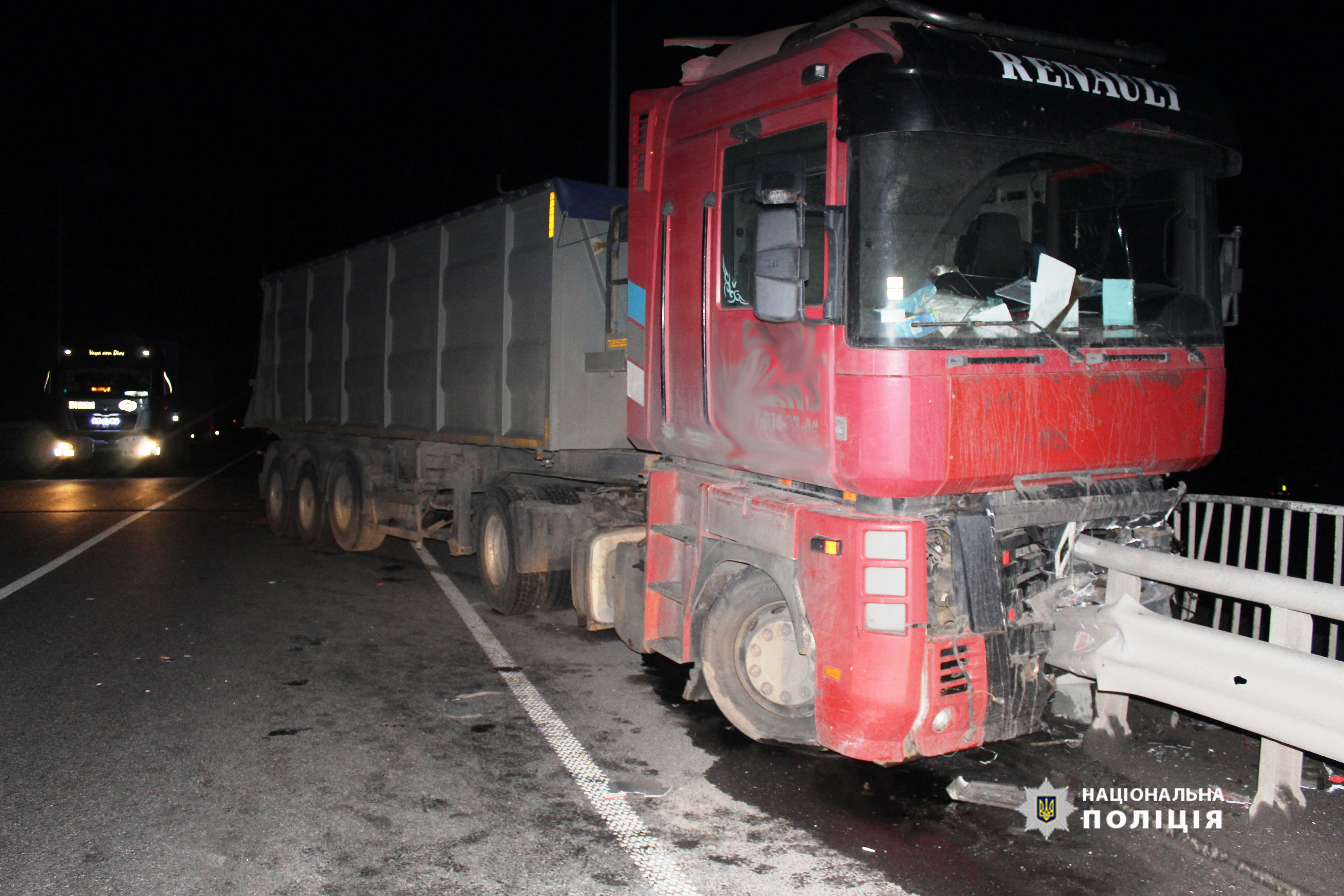 За інформацією слідства, під час виконання обгону, 41 — річний водій автомобіля Audi, виїхав на зустрічну смугу руху де допустив зіткнення з вантажівкою Renault. В подальшому вантажівка зіштовхнулась з відбійником, а автомобіль Audi з попутним Citroen.