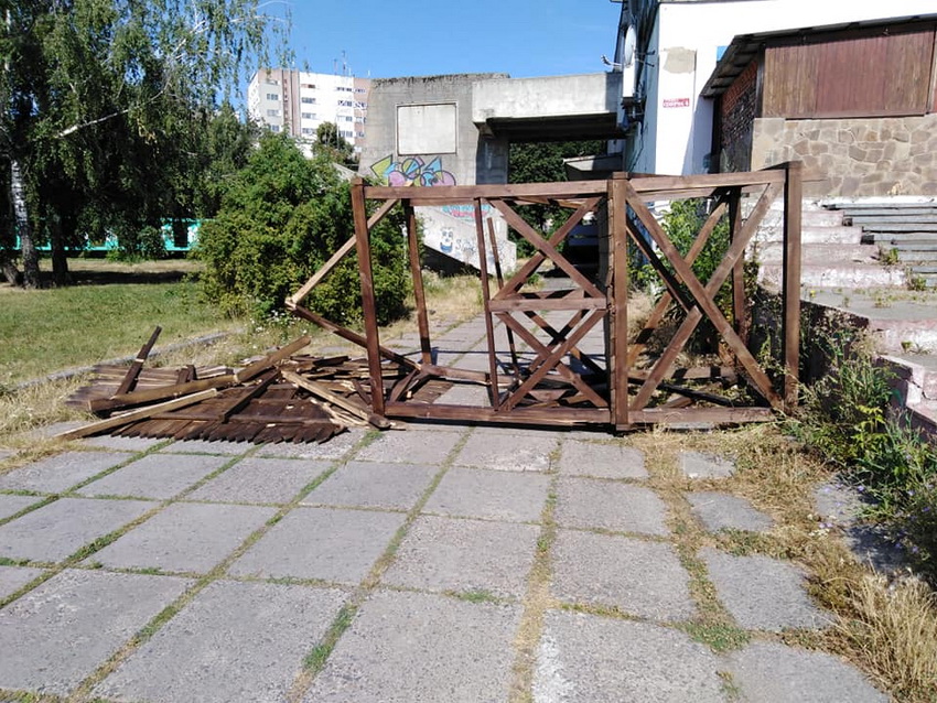 6 липня у Вінниці, біля кінотеатру «Росія» вандали розтрощили дерев’яну конструкцію – вежу, яку історики планували встановити на Замковій горі.