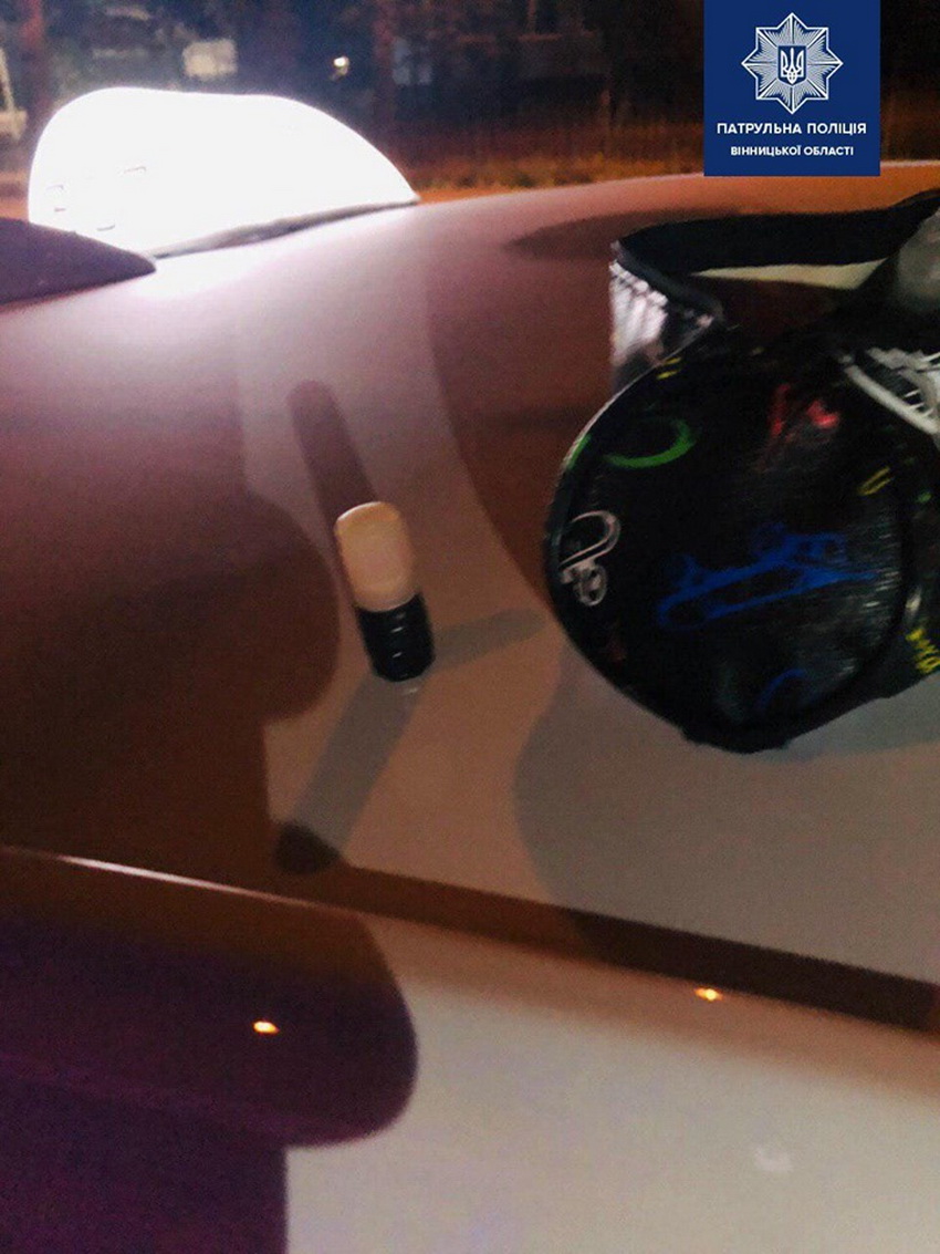 У Вінниці, в ніч з 8-го на 9-го серпня, близько 1-ї години, на вулиці Богдана Ступки за порушення ПДР патрульні поліцейські зупинили автомобіль Chevrolet Cruze. Водій мав ознаки наркотичного сп’яніння, однак проходити перевірку у лікаря від відмовився. Згодом поліцейські виявили у нього колбу з порошкоподібною речовиною та підроблене посвідчення водія, оскільки чоловік позбавленим права керування.