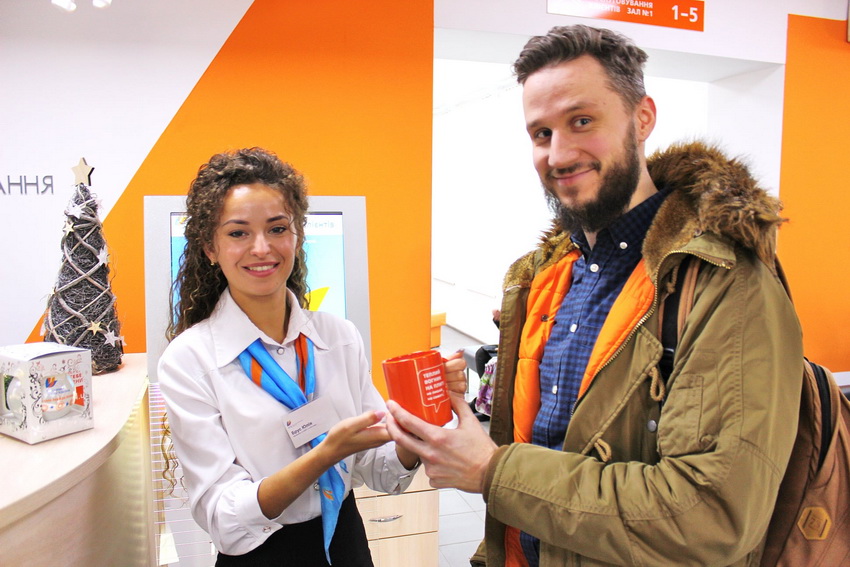 Упродовж усього тижня клієнти «Вінницягаз» отримували у ЦОКах подарунки від компанії – календарі, фірмові чашки, блокноти, новорічні кульки, термокружки тощо. Хтось отримував свій приз у розіграші за «щасливим білетиком», хтось – при реєстрації в онлайн-сервісах компанії, а хтось – разом із чеком електронної черги.