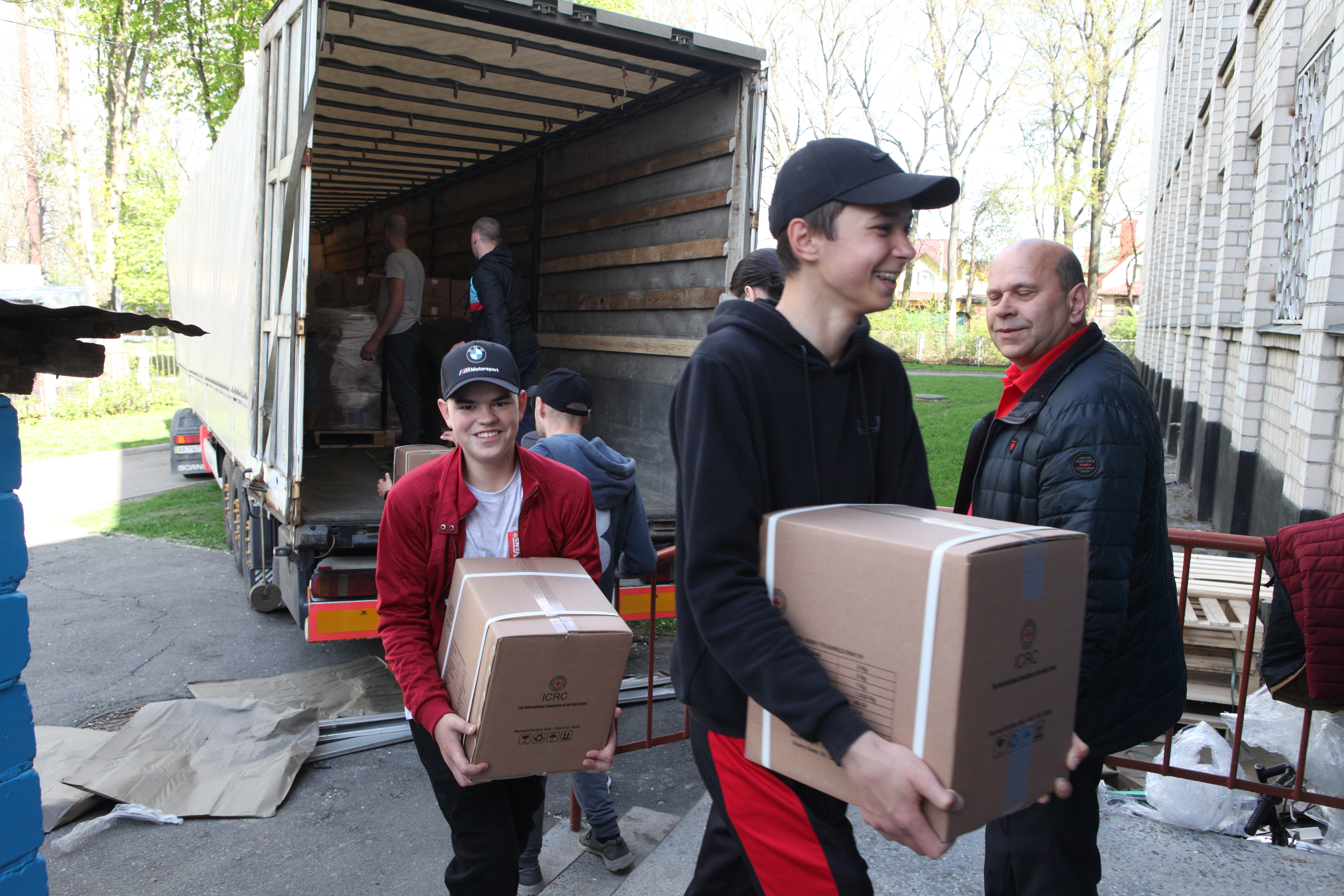 Розвантажували автівки працівники Вінницького ліцею №27 спільно з представниками батьківського та учнівського колективів, в тому числі ВПО.