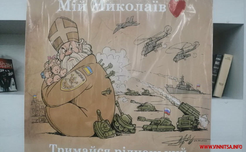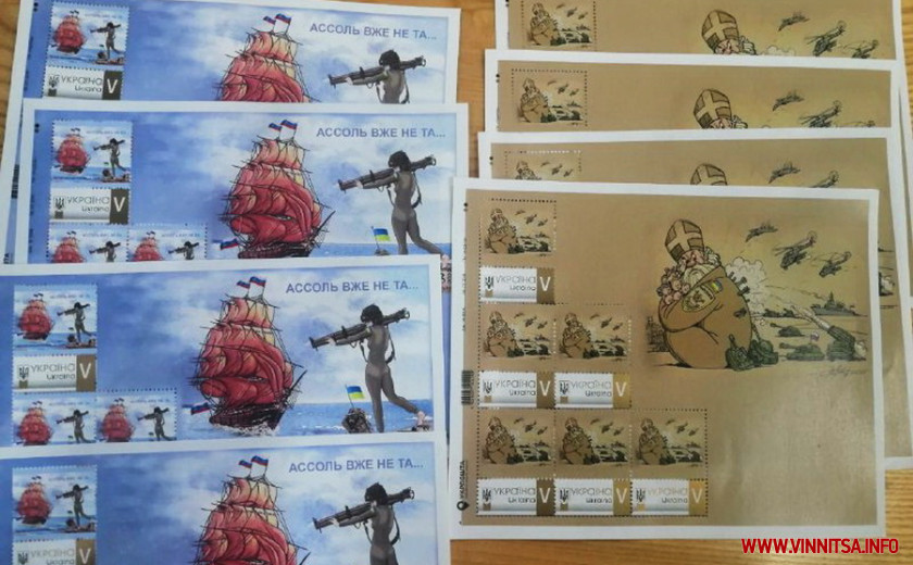 У Вінниці презентували виставку карикатур Міжнародного конкурсу карикатур «Російський військовий корабель, йди…!» та провели церемонію погашення марок «Ассоль уже не та…» та «Святий Миколай рятує Миколаїв».