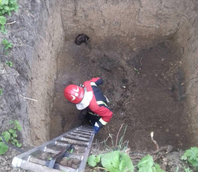 Прибувши на виклик, бійці ДПРЧ-8 за допомогою штурмової драбини, цілу та неушкоджену, підняли тварину нагору», – повідомляє прес-служба рятувальників.