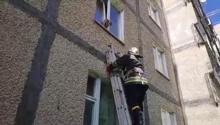 «Знесилену тварину побачила одна із мешканок під’їзду дев’ятиповерхівки на вул. Чайковського, 19 та покликала на допомогу рятувальників, адже власниці квартири в помешканні не було. Її, кількома годинами раніше, через погане самопочуття, було госпіталізовано до лікарні», – пише прес-служба.