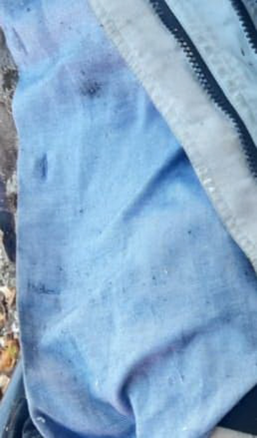 Був одягнений: в чорний в'язаний светр, блакитну сорочку, сірі штани, чорні туфлі на шнурках. З собою мав синій блайзер та чорний ремінь.