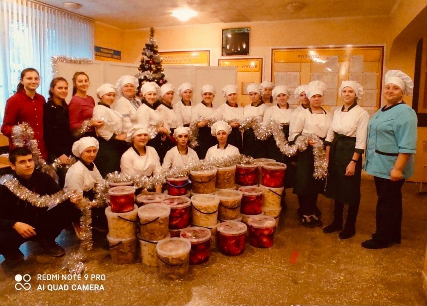 «Маємо гарну традицію підтримувати наших бійців. Чергова порція смаколиків незабаром поїде на Схід. За неповних три дні було приготовано понад 6 тисяч дерунів, понад 5 тисяч вареників з картоплею, майже 140 кг моркви та буряка по - корейськи, капусти маринованої з буряком. Смачні страви готували учні гр №18, 19, 22, майстри виробничого навчання з професії кухар, кондитер та працівники їдальні. Всю цю смакоту відвезуть на передову волонтери та ветерани АТО (ООС) міського Центру допомоги ветеранам АТО (ООС)», – йдеться в дописі навчального закладу.