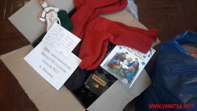 Учні вінницької школи №23 зібрали 20 посилок для бійців та дітей в зону АТО, які разом з іншою допомогою, зібраною вінничанами, 18 грудня відправили на передову.