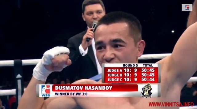 Хасанбой Дусматов («Українські Отамани») - Йоаніс Перес («Кубинські приборкувачі») - 3:0 (50:45 50:45 50:44);