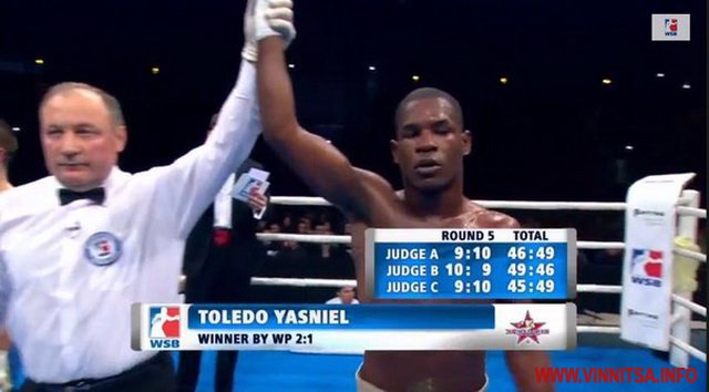 Володимир Матвійчук («Українські Отамани») - Ясніер Толедо Лопез («Кубинські приборкувачі») - 1:2 (46:49 49:46 45:49);