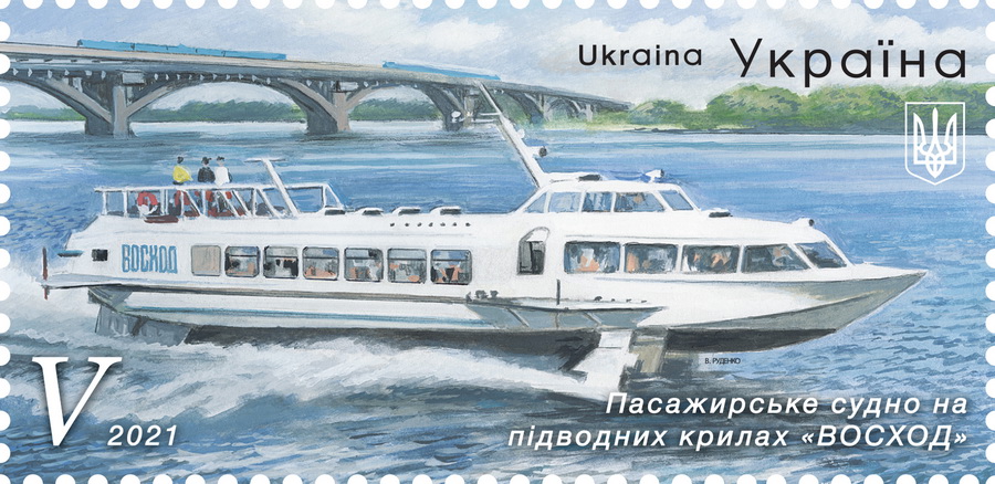 Поштову марку «Пасажирське судно на підводних крилах «Восход» представляє судно проєкту 352, яке вироблялося на Феодосійському суднобудівному заводі «Море» (АР Крим). Раніше цей теплохід був звичайним водним транспортом по Дніпру та у Дніпровсько-Бузькому лимані. До початку 1990 р. було побудовано понад 150 суден. Теплоходи поставлялися до 18 країн світу і частина суден досі ходять у Греції, Таїланді й Канаді.