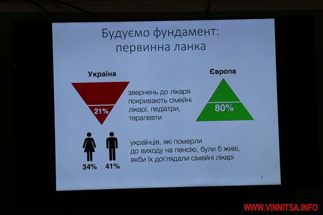 В Україні 20 % наших пацієнтів входять до первинної ланки, а 80% шукають допомогу на вторинній і третинній ланці. В інших країнах світу навпаки, 80% контакт з пацієнтами відбувається на первинній ланці і 20 % на вторинній і третинній ланці.