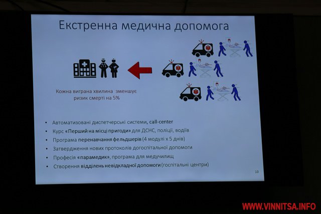 «Екстрена медична допомога це є переважно перший контакт пацієнтів з медичною системою. Тут у Вінниці вже зробили багато в системі екстреної медичної допомоги і ви працюєте над її покращенням. Не всюди є як у вас.
