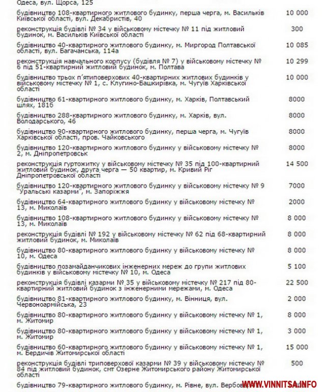 На будівництво 81-квартирного житлового будинку у м. Вінниця по вул. Червоноармійська, 23, який заплановано до введення в експлуатацію у 2016 році, виділено 2 млн. гривень.