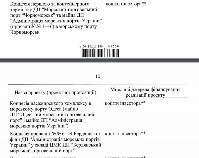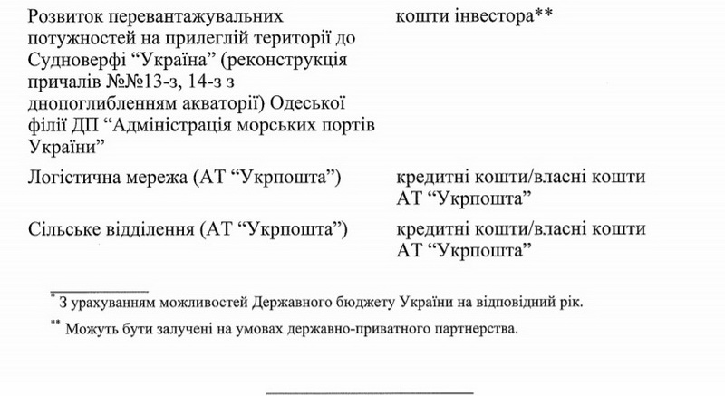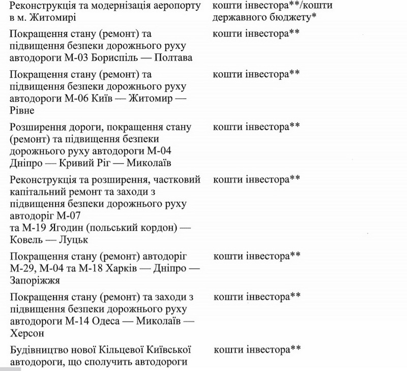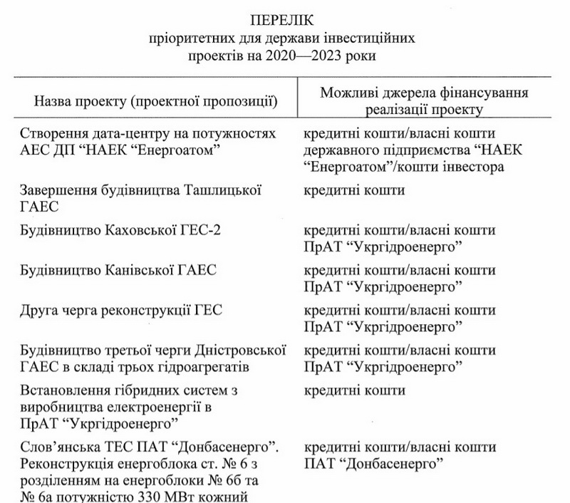 18 листопада Кабмін затвердив перелік з 104 пріоритетних для держави інвестиційних проектів 2020-2023 роки. Для кожного проекту визначено джерела можливого фінансування – державний бюджет, місцеві бюджети, власні кошти державних підприємств, кошти інвестора або кредит.