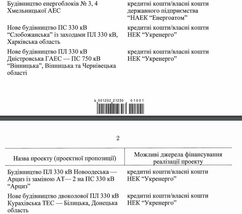 В переліку проектів також нове будівництво ПЛ 330 кВ Дністровська ГАЕС - ПС 750 кВ «Вінницька», Вінницька і Чернівецька області. Фінансування за рахунок кредитних коштів та власних коштів НЕК «Укренерго».