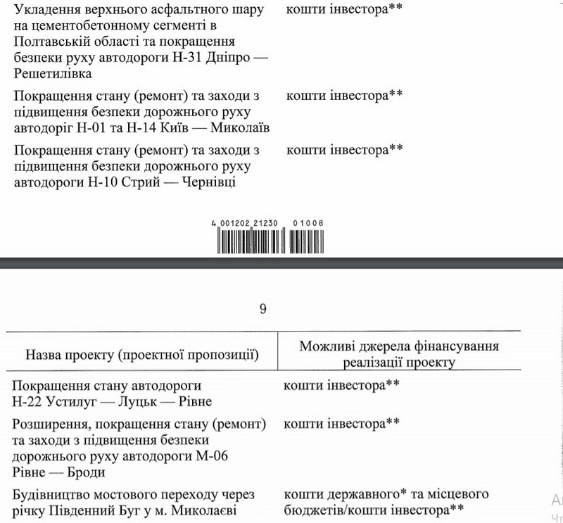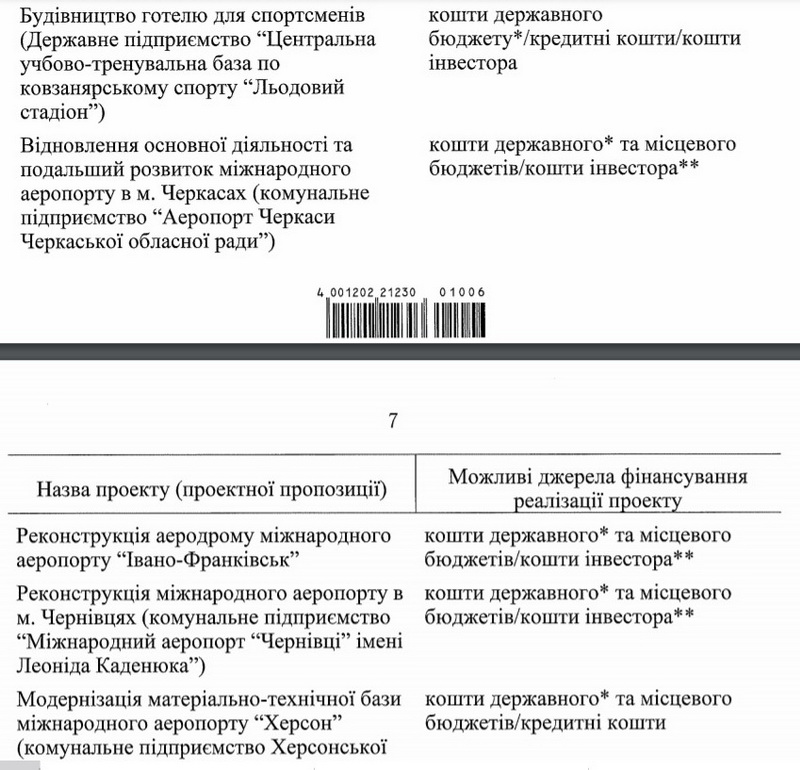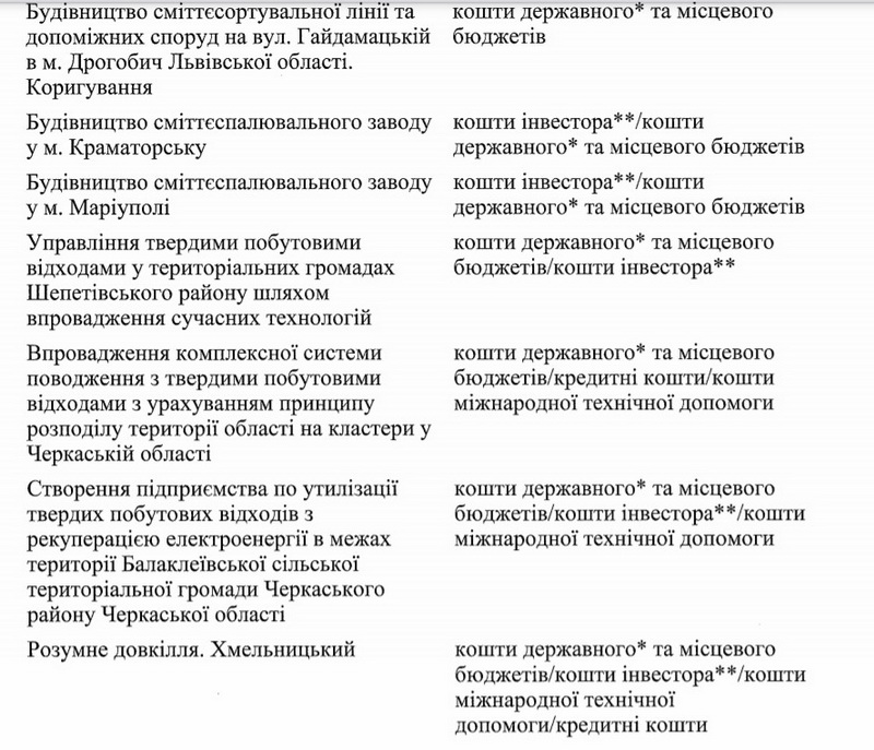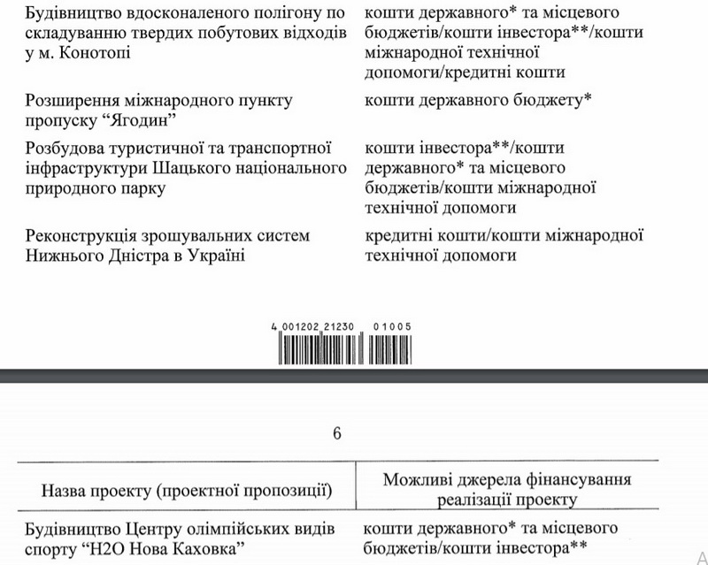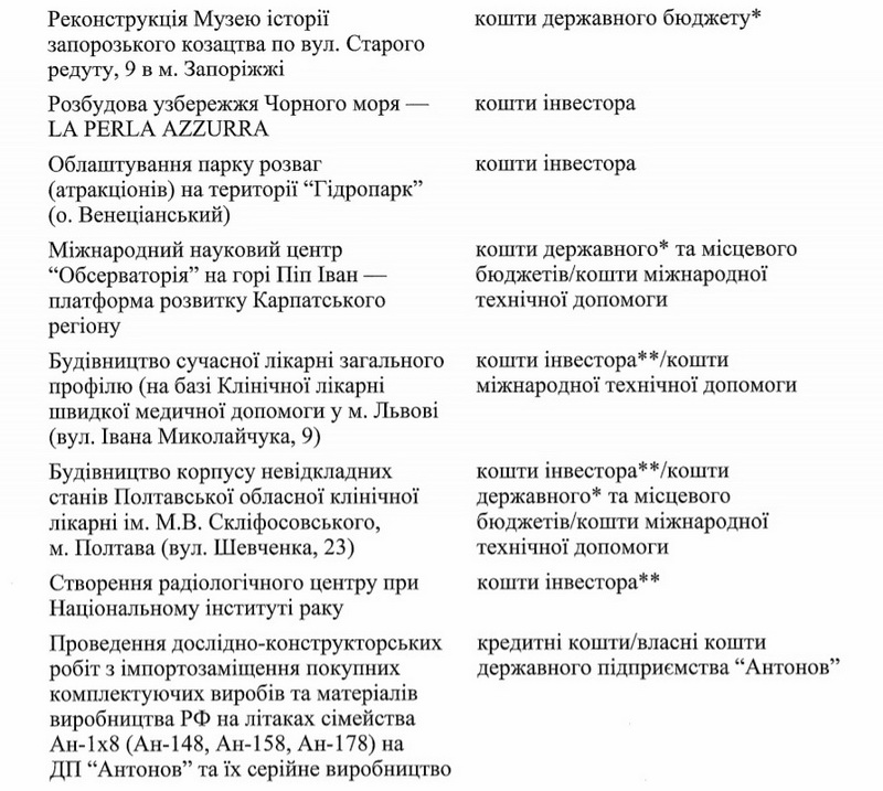 Додаток до рішення Кабміну з переліком проектів в Телеграмі опублікував нардеп Олексій Гончаренко.