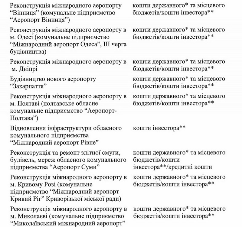 «Аеропорт «Вінниця» можуть реконструювати за державні кошти (при наявності в Держбюджеті на відповідний рік), та місцевого бюджетів/ кошти інвестора (можуть бути залучені на умовах державного приватного партнерства).