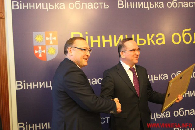 Валерій Коровій ознайомив поважного гостя з економічним потенціалом регіону, підкресливши: попри важку економічну ситуацію в державі, Вінницька область демонструє позитивну динаміку розвитку. Зокрема голова облдержадміністрації назвав реалізовані за останні роки потужні інвестиційні проекти: підприємство групи компаній «Віойл», молокозавод компанії «Рошен», група компаній «Миронівський хлібопродукт».